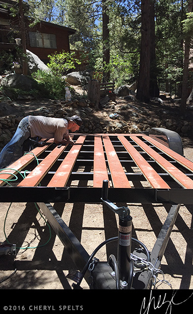 June 13, 2016 by Cheryl Spelts Image Archive: Tiny House Trailer The first task was to remove half of the deck boards. Post navigation blog post: My Tiny House: Framing the Foundation